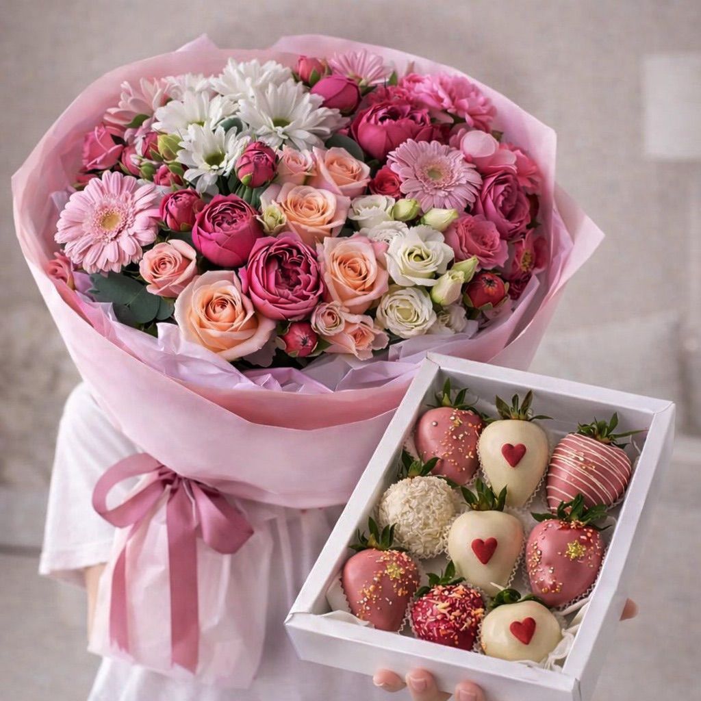Сборный букет + клубника в шоколаде