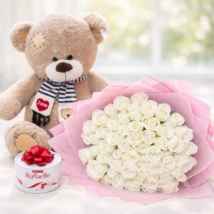 Также букет можно дополнить небольшим и милым презентом: мягкая игрушка или десерт.