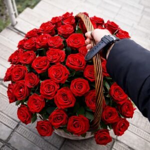 Корзина с розами — это оригинальный презент, уместный для любого повода. Оформленные таким способом цветы прекрасно подойдут в качестве подарка возлюбленной, родственнице или коллеге. Корзина красных роз будет великолепно смотреться на дне рождения, юбилее, свадебном торжестве или годовщине свадьбы. Внутри находится специальная губка, которая позволяет цветам выглядеть свежо на протяжении долгого времени. Необходимо лишь периодически подпитывать ее, подливая немного воды, и ваш букет надолго сохранит свой привлекательный вид и неповторимый аромат.
